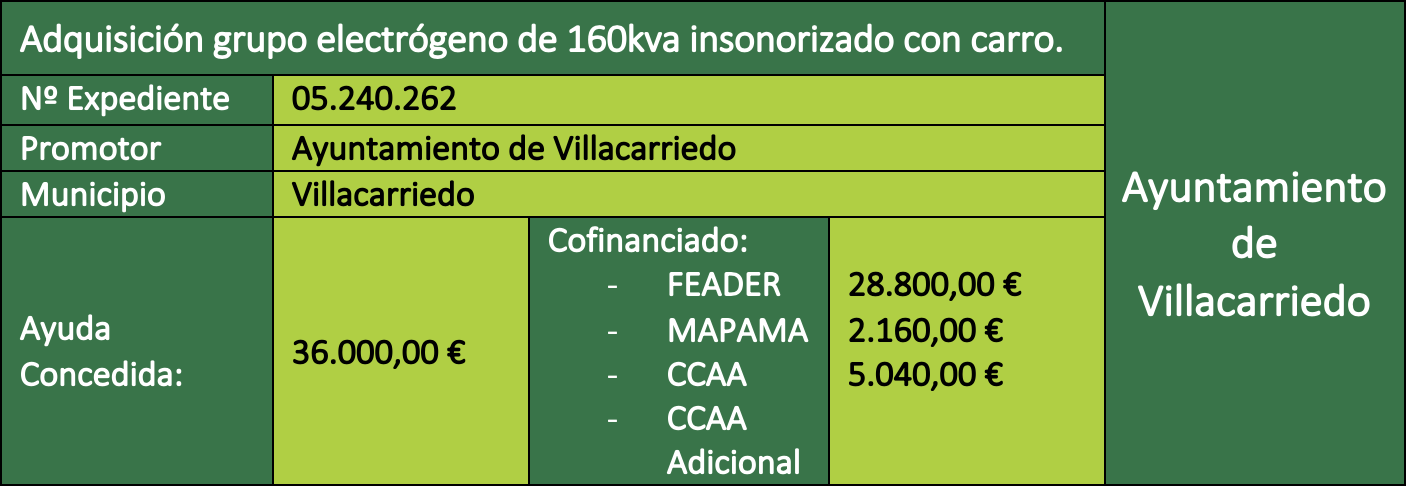 El Ayuntamiento de Villacarriedo ha impulsado la adquisición de un grupo electrógeno insonorizado de 160 KVA con carro, una actuación orientada a mejorar la capacidad de respuesta del municipio ante posibles interrupciones del suministro eléctrico. Esta inversión, apoyada por el programa LEADER 2014–2020, permitirá disponer de una fuente de energía autónoma en momentos de emergencia, garantizando el funcionamiento de los servicios municipales incluso en situaciones imprevistas como tormentas, averías en la red o desastres naturales.